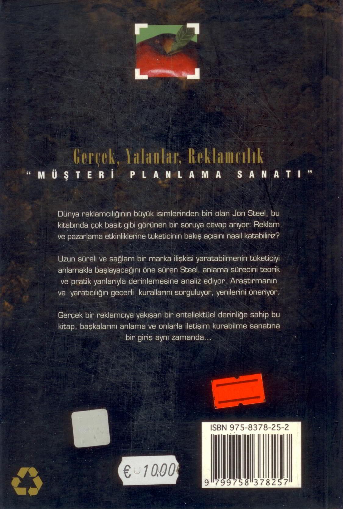 Dünya reklamcılığının büyük isimlerinden biri olan Jon Steel, bu kitabında çok basit gibi görünen bir soruya cevap arıyor: Reklam ve pazarlama etkinliklerine tüketicinin bakış açısını nasıl katabiliriz?