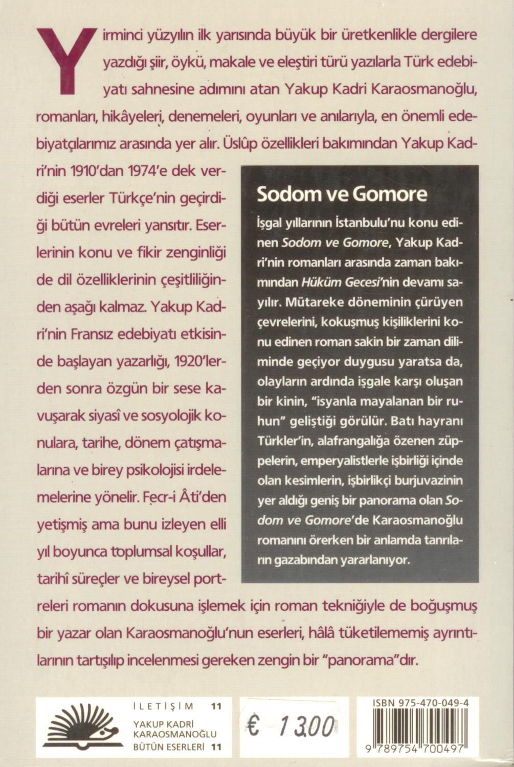 Yirminci yüzyılın ilk yarısında büyük bir üretkenlikle dergilere yazdığı şiir, öykü, makale ve eleştiri türü yazılala Türk edebiyatı sahnesine adımını atan Yakup Kadri Karaosmanoğlu, romanları, hikayeleri, denemeleri, oyunları ve anılarıyla, en önemli edebiyatçılarımız arasında yer alır. Üslup özellikleri bakımından Yakup Kadri`nin 1910`dan 1974`e dek verdiği eserler Türkçe`nin geçirdiği bütün evreleri yansıtır. Eserlerinin konu ve fikir zenginliği de dil özelliklerinin çeşitliğinden aşağı kalmaz. Yakup Kadri`nin Fransız edebiyatı etkisinde başlayan yazarlığı, 1920`lerden sonra özgün bir sese kavuşarak siyasi ve sosyolojik konulara, tarihe, dönem çatışmalarına ve birey psikolojisi irdelemelerine yönelir. Frecr-Ati`den yetişmiş ama bunu izleyen elli yıl boyunca toplumsal koşullar, tarihi süreçler ve bireysel portreleri romanın dokusuna işlemek için roman tekniğiyle de boğuşmuş bir yazar olan Karaosmanoğlu`nun eserleri, hala tüketilememiş ayrıntılarının tartışılıp incelenmesi gerken zengin bir "panaroma"dır.