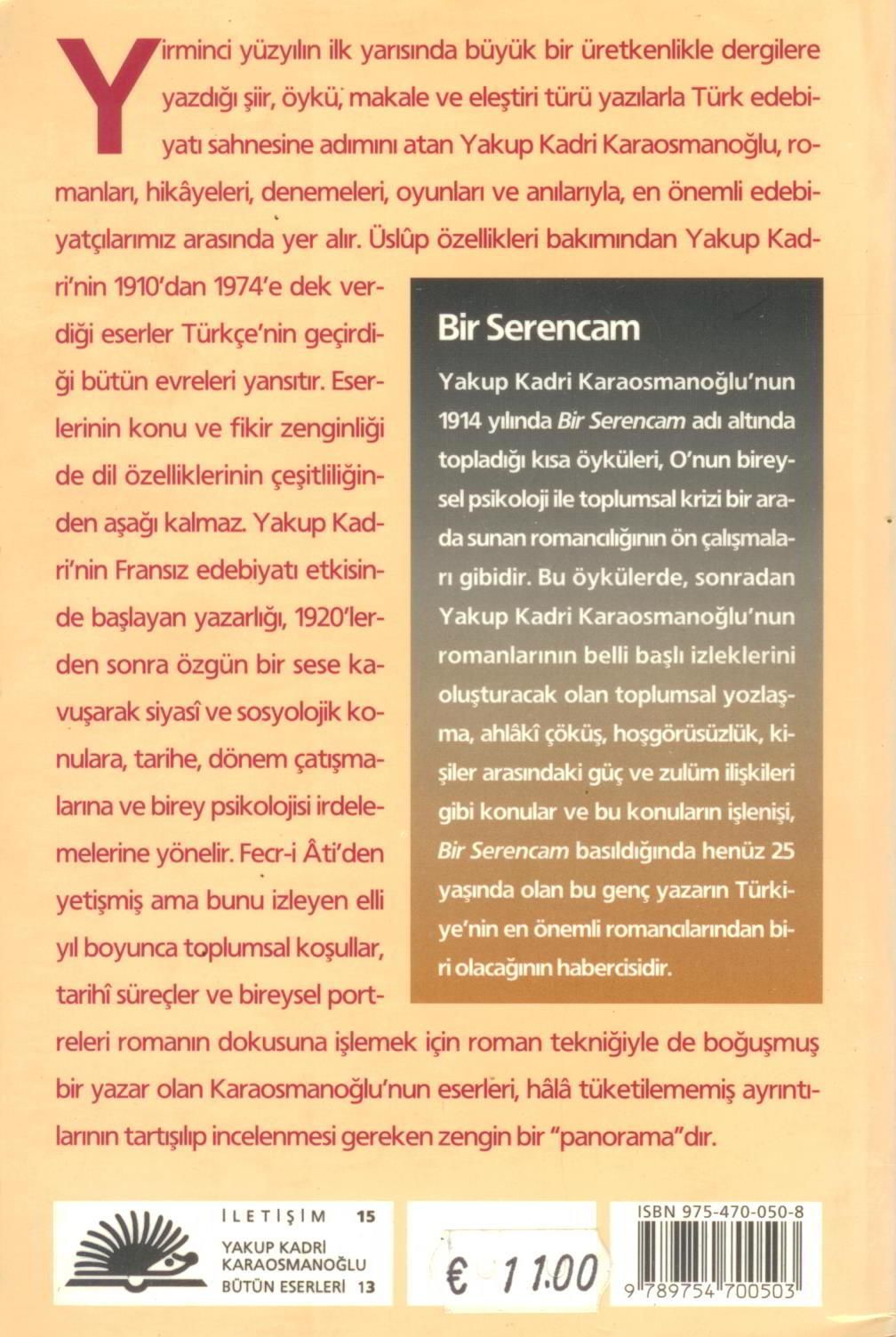 Kadın, namus, din, cehalet; savaşın Anadoluda bıraktığı izler; aşk, toplum parazitleri, ruh sapıklıkları, umutsuzluk ve görev duygularını konu edinen kitapta Yakup Kadrinin biçim, içerik ve teknik yönünden başarılı hikayeleri yeralıyor.
