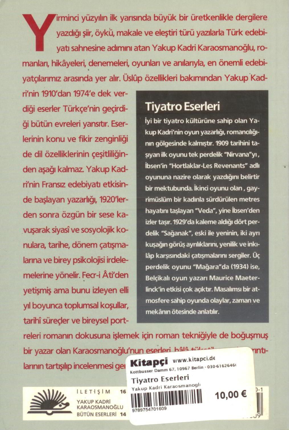 ...Kitaplaşmamış tiyatro oyunları, çeşitli makaleleri ve siyasal yazılarıyla 22-23 kitaplık bir diziye ulaşacağını umduğumuz Yakup Kadri'nin tüm eserlerinin ilk 13 kitabında, basımı yakın dönemde yapılan derlenmiş metinleri esas aldık. Sadeleştirme amacıyla da olsa değiştirme ve ekleme yapılmayan bu eserlerde şayet yazar sağlığında bazı değişiklikler yapmışsa, yazarın düzelttiği son metinler esas alındı...