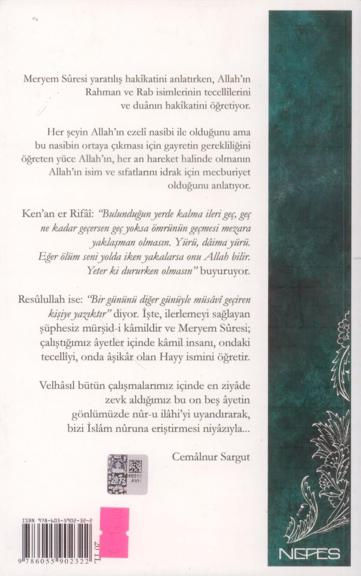 İşte, ilerlemeyi sağlayan şüphesiz mürşid-i kâmildir ve Meryem Suresi; çalıştığımız âyetler içinde kâmil insanı, ondaki tecellîyi, onda âşikâr olan Hayy ismini öğretir.