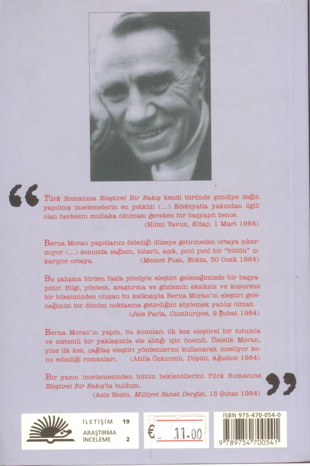 Berna Moran`ın yapıtı, bu konuları ilk kez eleştirel bir tutumla ve sistemli bir yaklaşımla ele aldığı için önemli. Üstelik Moran, yine ilk kez, çağdaş eleştiri yöntemlerini kullanarak inceliyor konu edindiği romanları.