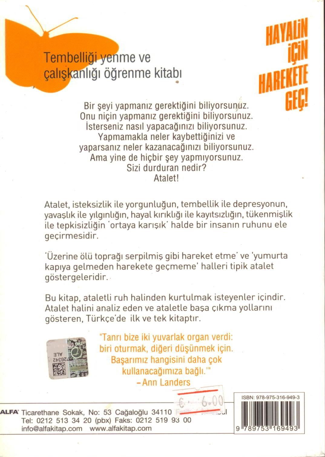 Bu kitap, ataletli ruh halinden kurtulmak isteyenler içindir. Atalet halini analiz eden ve ataletle başa çıkma yollarını gösteren, Türkçede ilk ve tek kitaptır.