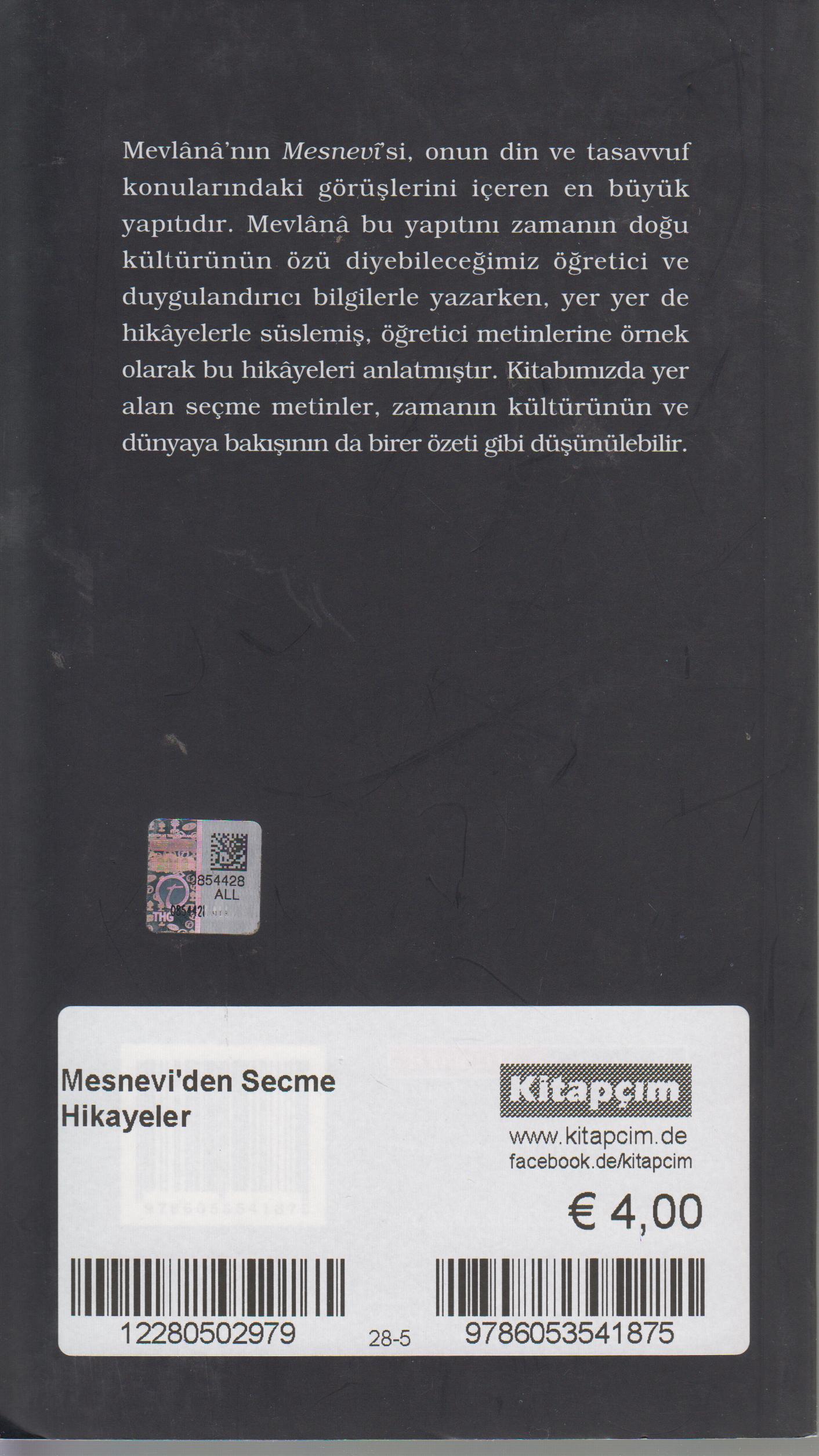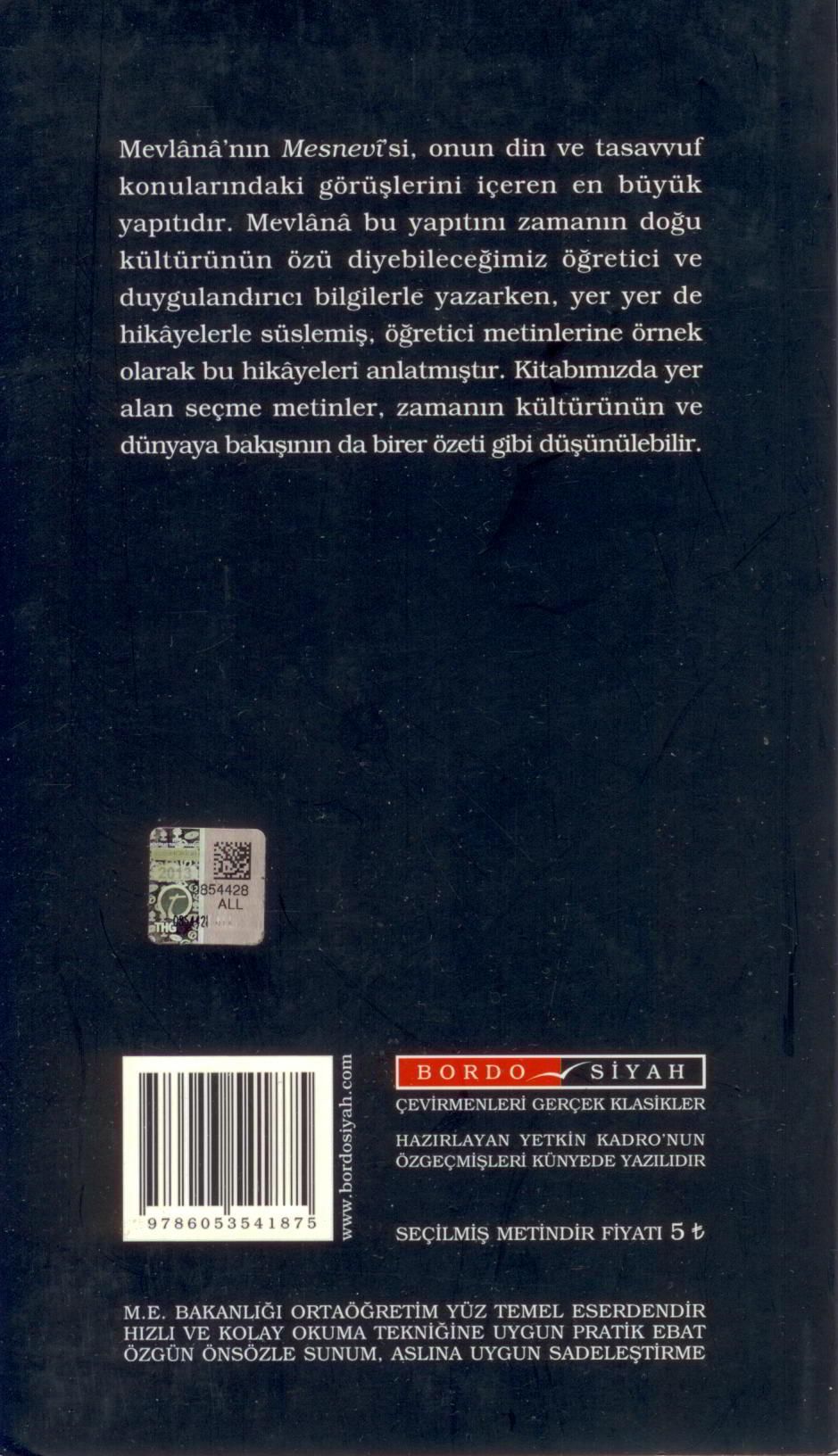 Mevlana'nın Mesnevisi onun din ve tasavvuf konularındaki görüşlerini içeren en büyük yapıtıdır. Mevlana bu yapıtını zamanın doğu kültürünün özü diyebileceğimiz öğretici ve duygulandırıcı bilgilerle yazarken yer yer de hikayelerle süslemiş öğretici metinlerine örnek olarak bu hikayeleri anlatmıştır. Kitabımızda yer alan seçme metinler zamanın kültürünün ve dünyaya bakışının da birer özeti gibi düşünülebilir.