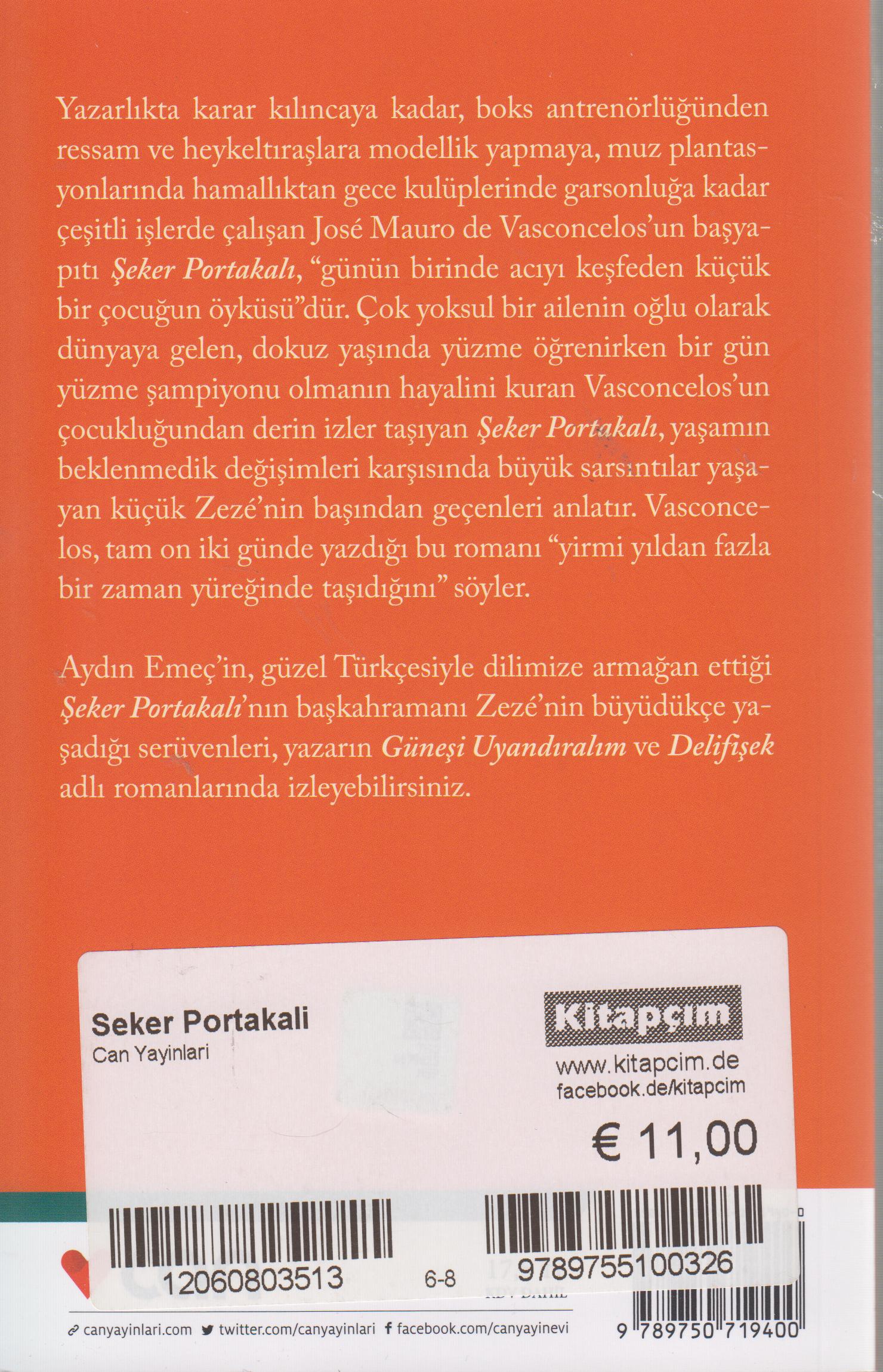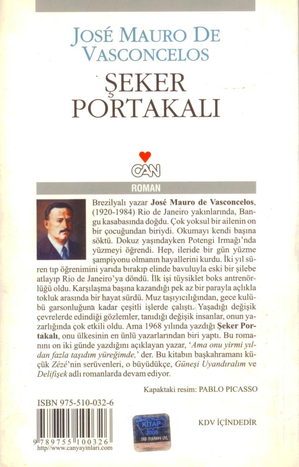 Brezilyalı ünlü yazar Jose Mauro de Vasconcelos, 1920'de Rio de Janeiro yakınlarında, Bangu'da doğdu. Çok yoksul olan ailesi, onu Natal kasabasındaki amcasının yanına yolladı. Orada dokuz yaşındayken Potengi Irmağında yüzmeyi öğrendi ve hep günün birinde yüzme şampiyonu olmanın hayalini kurdu. Liseyi Natal'de bitirdikten sonra iki yıl tıp öğrenimi gördü. Öğrenimini yarıda bırakıp yeni hayaller peşinde Rio de Janeiro'ya döndü. İlk işi, hafif siklet boks antrenörlüğü oldu. Yaşamı boyunca çeşitli işlerde çalıştı, bu onun yazarlığına büyük katkılar sağladı. İlk kitabı "Yaban Muzu" 1940'ta yayımlandı. 1945'te yayımlanan "Beyaz Toprak" adlı romanı çok beğenildi. Daha sonra "Evden Uzakta" (1949), "Sular Çekilince" (1931), "Kırmızı Arara" (1953) ve "Ateş Çizgisi" (1955) romanlarını yazdı. "Kayığım Rosinha" (1961) ile ününün doruğuna çıktı. En ünlü kitabı "Şeker Portakalı" (1968) on iki günde yazılmıştı. "Ama onu yirmi yıldan fazla yüreğimde taşıdım," der yazar. Bu kitaptaki küçük Zeze'nin serüvenleri "Güneşi Uyandıralım" (1974) ve "Delifişek" (1963) adlı romanlarında sürer. Bu ünlü yazar 1988'de öldü.