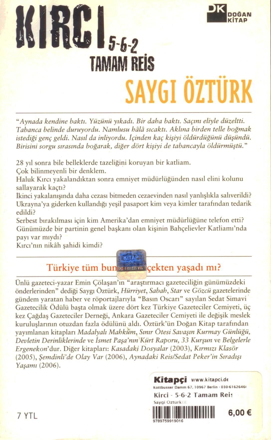 "Bahçelievler katliamının kilit ismi Haluk kırcı, "o gece" yaşananları, Bünyamin Adanalı, yıllar süren kaçak hayatını ve yaşadığı inanılmaz olayları ilk kez bu kitapta açıklıyor.