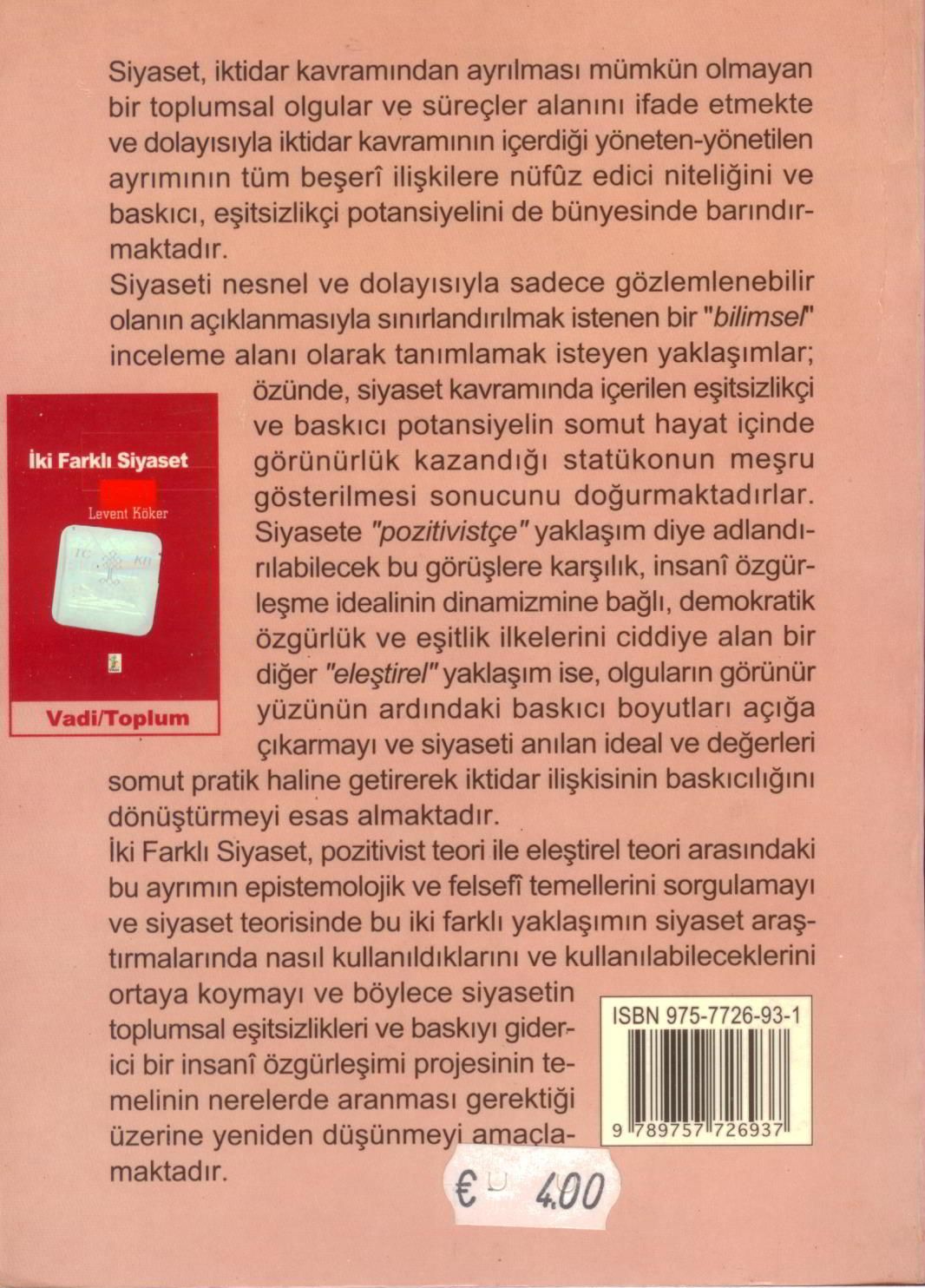 İki Farklı Siyaset, pozitivist teori ile eleştirel teori arasındaki bu ayrımın epistemolojik ve felsefi temellerini sorgulamayı ve siyaset teorisinde bu iki farklı yaklaşımın siyaset araştırmalarında nasıl kullanıldıklarını ve kullanılabileceklerini ortaya koymayı ve böylece siyasetin toplumsal eşitsizlikleri ve baskıyı giderici bir insani özgürleşimi projesinin temelinin nerelerde aranması gerektiği üzerine yeniden düşünmeyi amaçlamaktadır.
