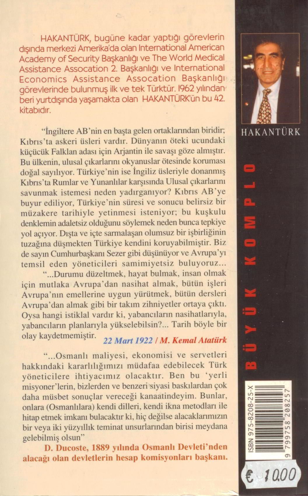 Hakan Türk bugüne kadar yaptığı görevlerin dışında merkezi ABD'de olan International American Academy of Security başkanlığı, The World Medical Asistance Assocation Başkanlığılığı görevlerinde bulunmuş ilk ve tek Türk'tür. 1962 yılından beri yurtdışında yaşamakta olan Hakan Türk'ün bu 42. kitabıdır.